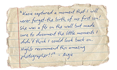 "Kacie is amazing! She made me feel so comfortable during my maternity shoot. She also worked so well with a very uncooperative 3 year old and got amazing shots of him. I can tell she has a passion about what she does, and it shows in her work! I will be using her for future pictures, and recommend her for pictures! She had my pictures back to me in just one day! Amazing!" - Rebecca